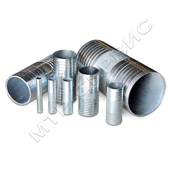 Ремонтное соединение «Ёлочка» - это штуцер с зубчатой насечкой на концах из оцинкованной стали, устойчивой к коррозии.